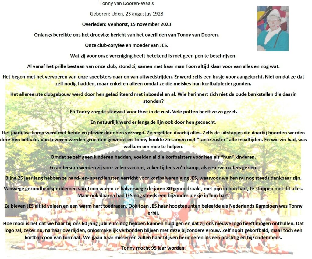 In memoriam Tonny van Dooren-Waals